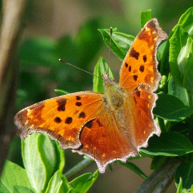 Actually, anyone would enjoy seeing the eastern comma (a medium-size butterfly), as its upper wing colors are beautiful and striking. |