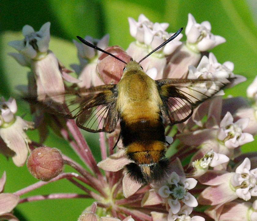 The snowberry clearwing, about an inch long, was somewhat smaller than the first humming bird moth I came across, but just as beautiful.