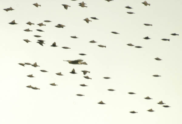 Whichever way the hawk turned, the starlings followed. |
