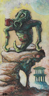 "Patient Virtues," in Mike Philbin, ed., Chimeraworld 3: Twenty-three Tales of Spiritual Decay, Chimericana Books (UK), 2005, pp. 51-56 [available as print on demand or as a pdf]. My story stems from an extended dream, and as such, I changed the language pacing to reflect that. It has a certain rhythm which one normally doesn't encounter. The story also received an honorable mention from the Writers of the Future Contest. "Two by Two," Aboriginal Science Fiction, spring 1993, pp. 108-112. On a colony spaceship, many humans have been transformed into animals to save space. The Steel Eye. Space & Time Books, 1984. My first published novel. Several years ago I wrote a few thoughts about it, and there's a review here. Gordon Linzner of Space and Time is still selling it. "The Royal Split," Raven (UK), no. 8, spring-summer 1981, pp. 24-25. More a prose poem than story, it's about a head rolling off a monarch. Included are two of my illustrations. "My Summer Vacation," Pig Iron, no. 4, 1978, pp. 74-76. A tale about a very unusual summer camp. Later, Pig Iron published a science fiction story of mine. "The Steel Works," Isaac Asimov's Science Fiction Magazine, summer 1977, pp. 135-40. My first professional sale featured my robot detective, later published in The Steel Eye. "A Winged Shadow," Wyrd, no. 5, 1975, pp. 24-30. I don't remember the story, but Greg Stafford, the editor, went on to fame in his own RPG world. "Songs of Carlotta," Aspect: Poetry, Fiction, Reviews, no. 60, 197?, pp. 9, 11. My first published prose poem. "George," Dramatika, 197? My first published play, which took up perhaps a third of the issue. And then there is a whole miscellany. American Dane was a favorite magazine, for which I wrote about a dozen articles, illustrated two covers, one calendar, and, for a few years, had a monthly children's drawing. Of my cartoons and illustrations that have appeared in various small presses, one of my best venues was the tabloid Pulp (edited by Howard Sage), for which I used to have the centerfold, allowing large artwork (i.e., 15 by 20 inches or so). That was a lot of fun. | ||||||||||