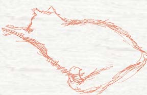 Pumpkin bids good night. Of course, the first generation had the benefit of Pumpkin, who from the age of six months ruled the household and who was everything one might hope to find in a pet. Every night she would give me a special "good night" by sitting on my chest and staring at me and giving a pet or two on my chin while I stared at her. After several minutes, she was content to go sleep on the foot of the bed. The second generation began one day when Sue decided that the presently catless household should be catified. Instant gratification necessitated going to a pet shop, in which Muffin was found; however, rather than the happy little friend that we hoped for, the kitten Muffin disappeared in the dark recesses of the bedroom and no amount of coaxing could bring her out. While discussing this new problem of how to get the kitten to act like a kitten, Sue and I saw a small, dark shape zoom into sight, smack a small ball that we were trying to lure her with earlier, and then disappear again. The trick to seeing Muffin was to play with her. When playing, Muffin is happy; otherwise, she's the shyest animal in the world. Cloudberry came next, for Muffin needed a friend. And for once in my life, a hunch worked, and Cloud and Muffin became the close friends. Cloudberry, though, is not content to be known only as Muffin's pal, and persists in demonstrating what it means to have a high energy level, whether standing up or diving into her favorite treat. It was during this period that I made a remark that resulted in Sue's nine-month project of bringing Moonshadow indoors, the cat with the continuous purr, meaning that there is some kind of master balance somewhere. And when I thought life was safe, George climbed into the household. Nor should we forget Lucy. For that matter, no one would be allowed to forget Lucy. Cloudberry | Moonshadow | Muffin |