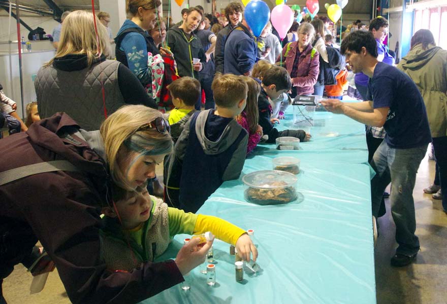 Upstairs in addition to various games, face painting, and crafts, the Penn State Entomology exhibit Wild About Bugs returned and generated much pleasure.